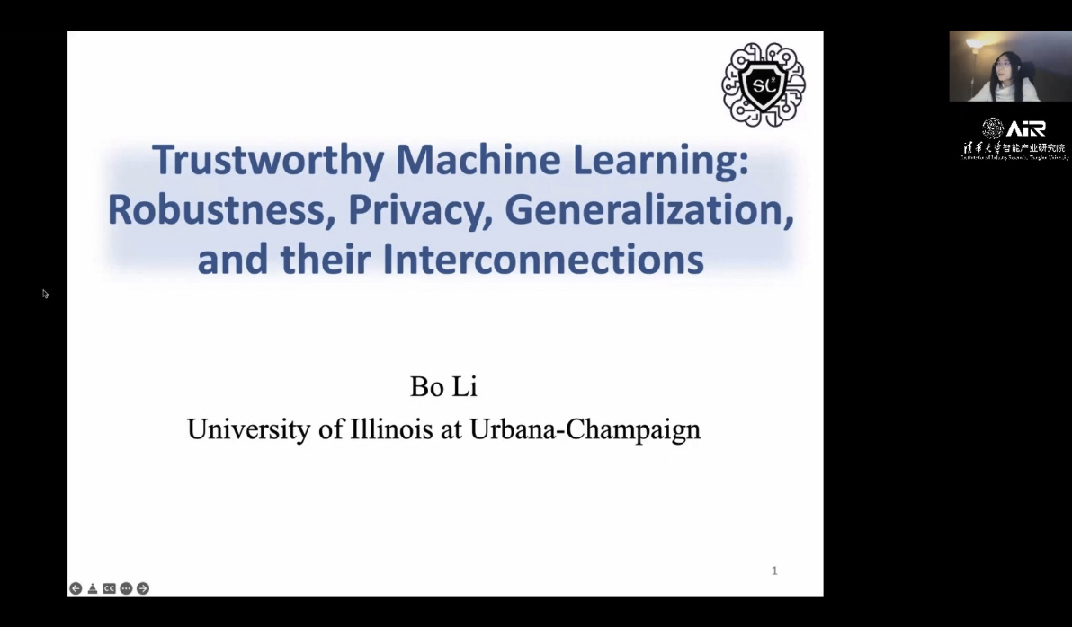 On February 23, the 16th AIR Academic Salon was held online as scheduled. In this issue, we are honored to have Prof. LI Bo from the Department of Computer Science, University of Illinois Urbana-Champaign to give a presentation entitled "Trusted Machine Learning: Robustness, Privacy, Generalization, and Their Intrinsic Correlates" online. The event was hosted by LIU Yang, Associate Professor of the Institute for AI Industry Research, Tsinghua University (AIR). Over 1,700 audience joined the livestream, and a total of nearly 3,000 views have accumulated as of now.