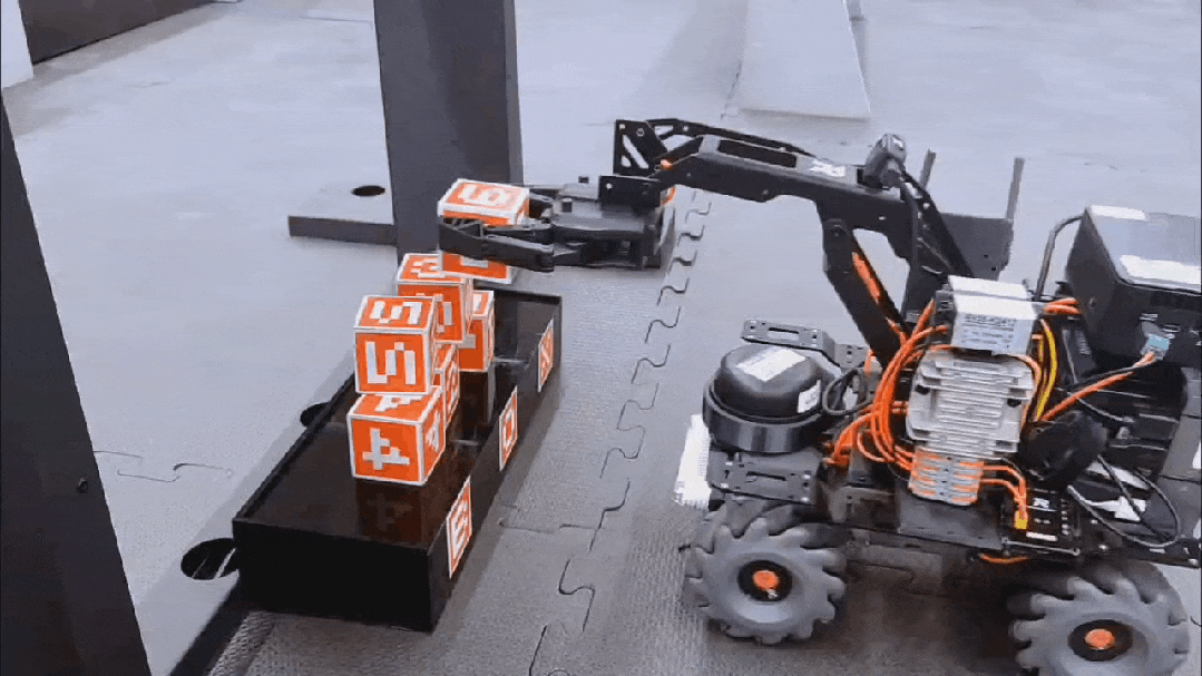 RoboMaster高校Sim2Real挑战赛(简称“RMUS”)的核心形式是通过全自动运行的、经过官方改装的RoboMaster EP机器人兑换矿石,以获得相应分数。参赛机器人在5分钟比赛时间内,采用Sim2Real模式,根据兑换标签显示信息,兑换对应矿石来获取分数,最终根据总分数进行排名。比赛主要考察在仿真平台中完成的程序在实际部署中的运行效果。参赛队伍需要在模拟器中进行算法开发与调试,并在规定日期内在线上提交代码,官方人员将对应代码部署于相同型号的实体机器人中,以完成矿石兑换任务。相比于其它RoboMaster高校赛事,此项比赛无需参赛队伍制作实体机器人,参赛人员可将全部时间投入到算法设计中。
