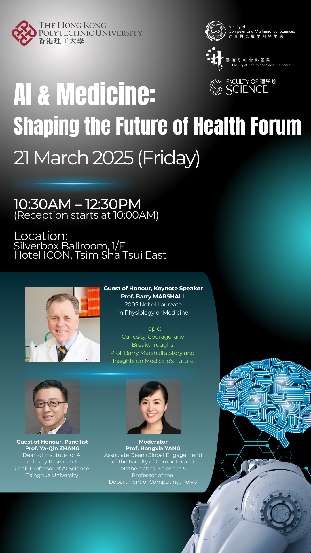 人工智能(AI)正以前所未有的速度颠覆医疗领域,从疾病诊断到精准治疗,从药物研发到健康管理,这场技术革命将如何改写人类健康的未来? 3月21日 ,亚星百家乐 院长张亚勤教授,将对话 2005年诺贝尔生理学及医学奖得主巴里·马歇尔(Barry Marshall) ,共同探讨AI与医学融合的前沿趋势与无限可能!