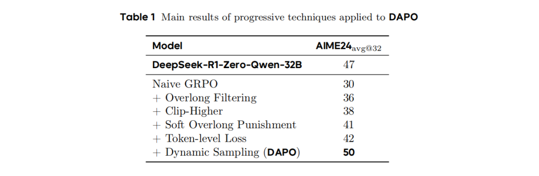 仅需一半的训练步数,DAPO的表现便在AIME 2024上超越了前SOTA模型DeepSeek-R1-Zero-Qwen-32B