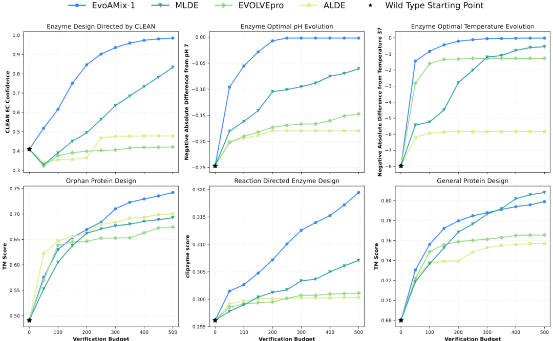 最终结果显示由AMix-1产生的最优变体活性提升高达50倍,显著超越已知方法(比SOTA提升约77%),且不依赖反复筛选或手动设计,完全由模型自动生成。这是「从模型到实验」的完整闭环,也是 AI 在功能蛋白设计上首次达成的量级突破。