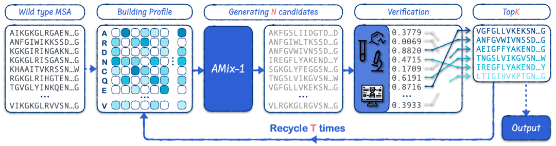 AMix-1模型在湿实验中的生成迭代和相应的变异过程