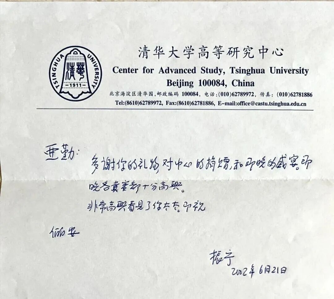杨先生为人似玉、似浑金璞玉。他格外平易近人,即便已是享誉世界的学者,仍会在学校里给学生们亲自开课。他曾讲过普通物理课程,他的课堂总能跨越学科界限,学物理的、学哲学的、学工程的,听了之后都能从中获得启示,仿佛在不同领域间架起了一座桥梁。大孝尊亲,犹记得三年前我去探望先生,他提起我在书中写过的与我母亲相处的故事,格外动容,也与我分享了在《曙光集》中与父亲母亲的章节。