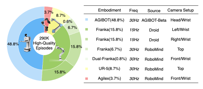 以语义-动作对齐为导向的数据遴选标准:我们确立了严格的数据质量门槛,核心是筛选视觉帧清晰、语言指令描述精准且与后续动作序列高度关联的数据样本。此举从源头上确保了模型学习到的是有明确因果关系的“行为知识”,而非浅层的虚假关联。