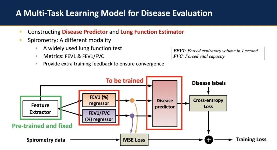 除了以上论文发表外,高教授团队也在智慧医疗的具体场景需求下,将前述的多模态感知与端侧 AI 部署技术进行应用,搭建了集成的AI 与感知系统,用于呼吸道疾病的诊断。为了解决实际应用中采集的数据高度模糊且异质(ambiguity and heterogeneity)的问题,除了模型推理阶段实际使用的声学信号外,该工作还引入了额外的肺功能测试结果用于辅助模型训练阶段的收敛。该工作与 Children’s Hospital of Pittsburgh 合作,采集了包含 382 个样本的数据集,并已公开于 Hugging Face (//huggingface.co/datasets/ericyxy98/pulmonary-disease-airway-lung-function-dataset).